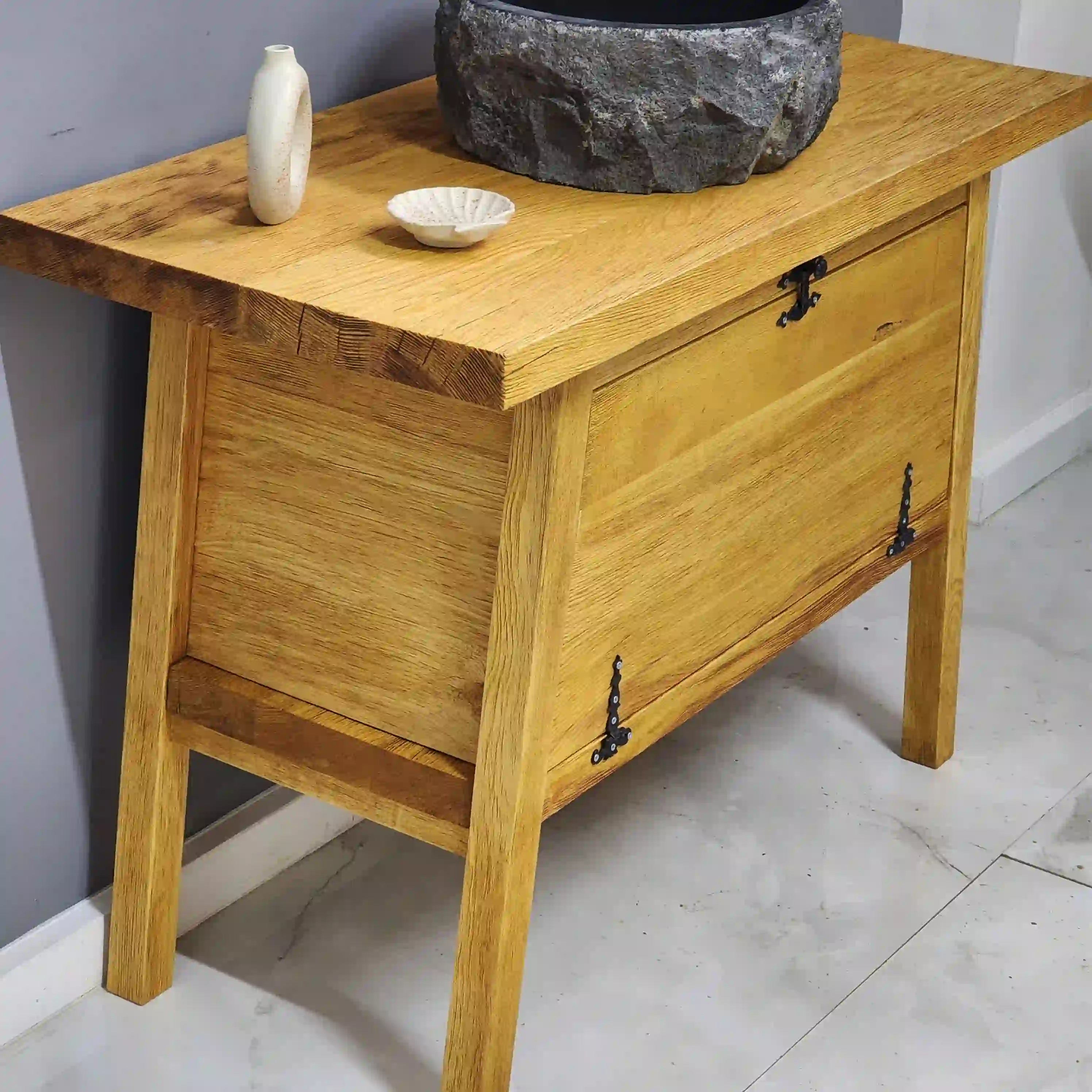 Willkommen in unserer Kollektion handgefertigter Badezimmerschränke aus rustikalem Massivholz, bei denen handwerkliche Handwerkskunst Ihren Wunsch für Ihr Badezimmer erfüllt.
