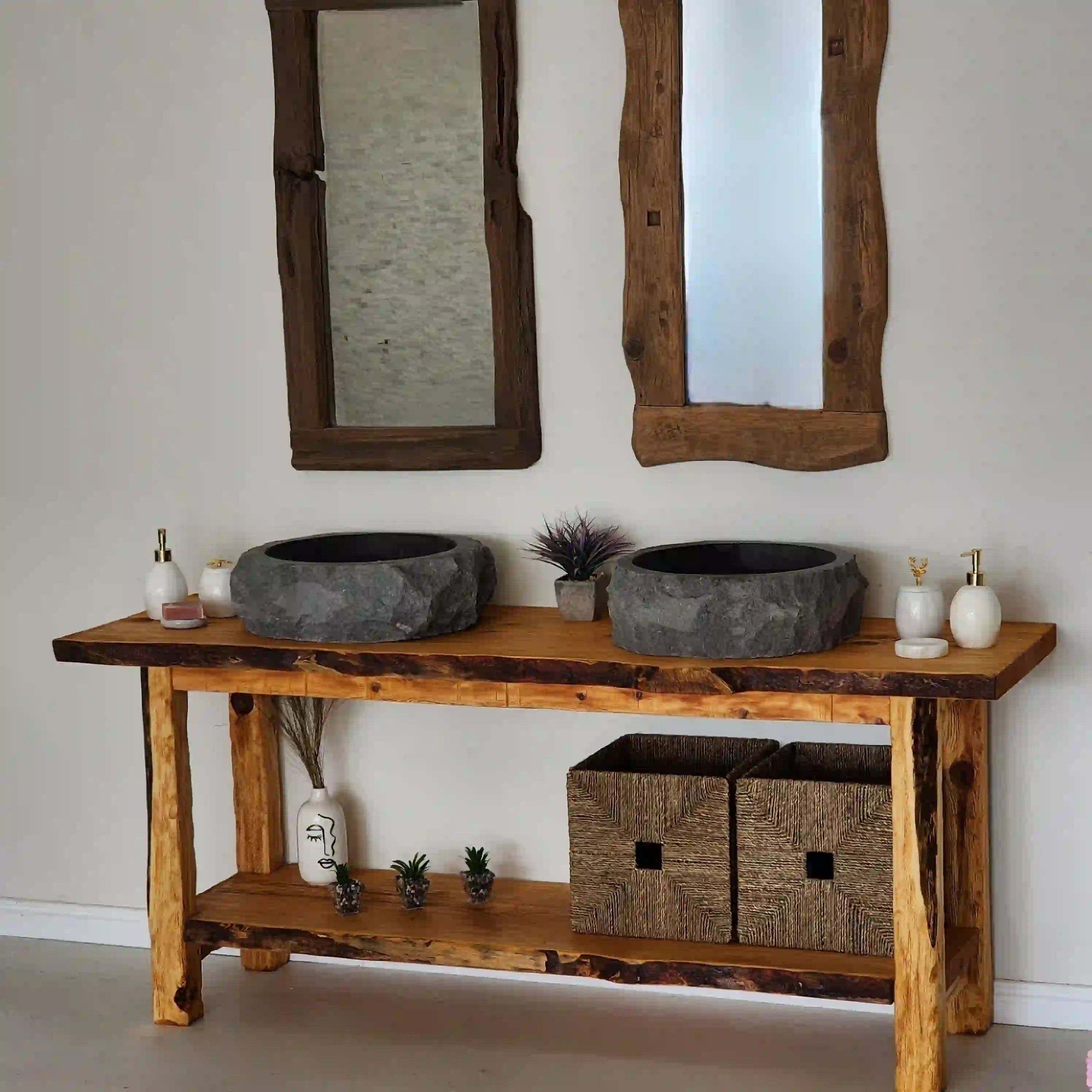 Willkommen in unserer Kollektion handgefertigter Badezimmerschränke aus rustikalem Massivholz, bei denen handwerkliche Handwerkskunst Ihren Wunsch für Ihr Badezimmer erfüllt.