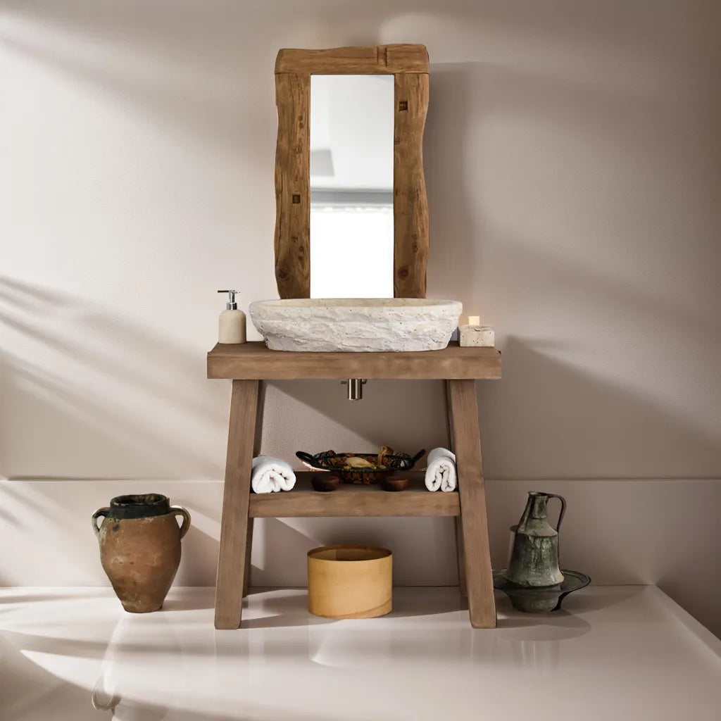 Willkommen in unserer Kollektion handgefertigter Badezimmerschränke aus rustikalem Massivholz, bei denen handwerkliche Handwerkskunst Ihren Wunsch für Ihr Badezimmer erfüllt.