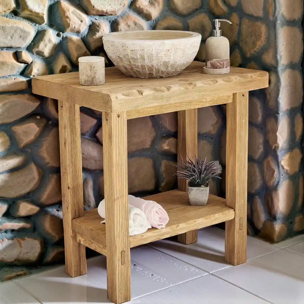 Kleines Massivholz mit Einzel- oder Doppelwaschbecken - Handgefertigtes Altholz und Scheunenholz, einzigartiges Design - Mid Century Wohndekor