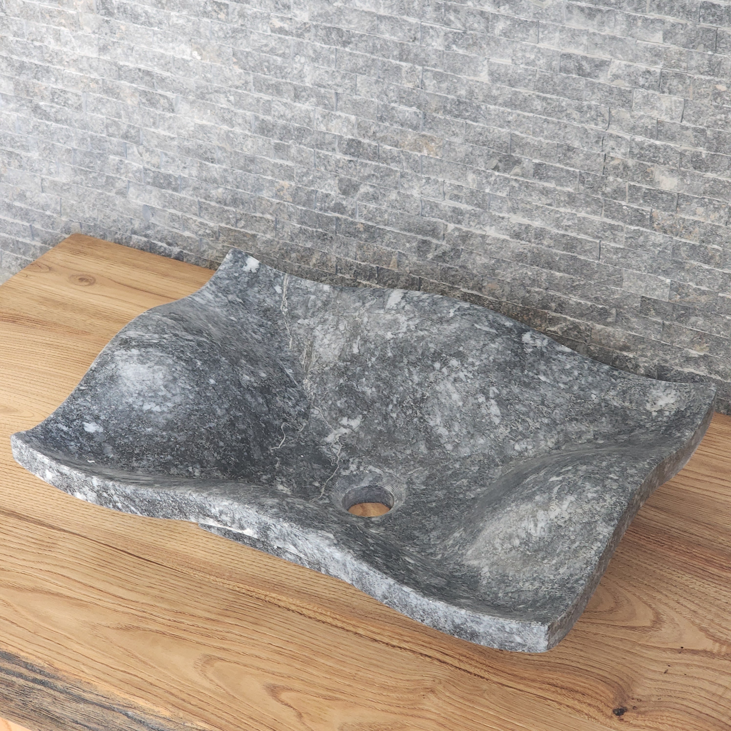 Introduce the raw beauty of nature to your home with the Norhew Grey Marble Vessel Sink. Masterfully hand-carved from a single block of solid natural stone, this basin features a stunning, organic "wave" silhouette that mimics the flowing motion of water.