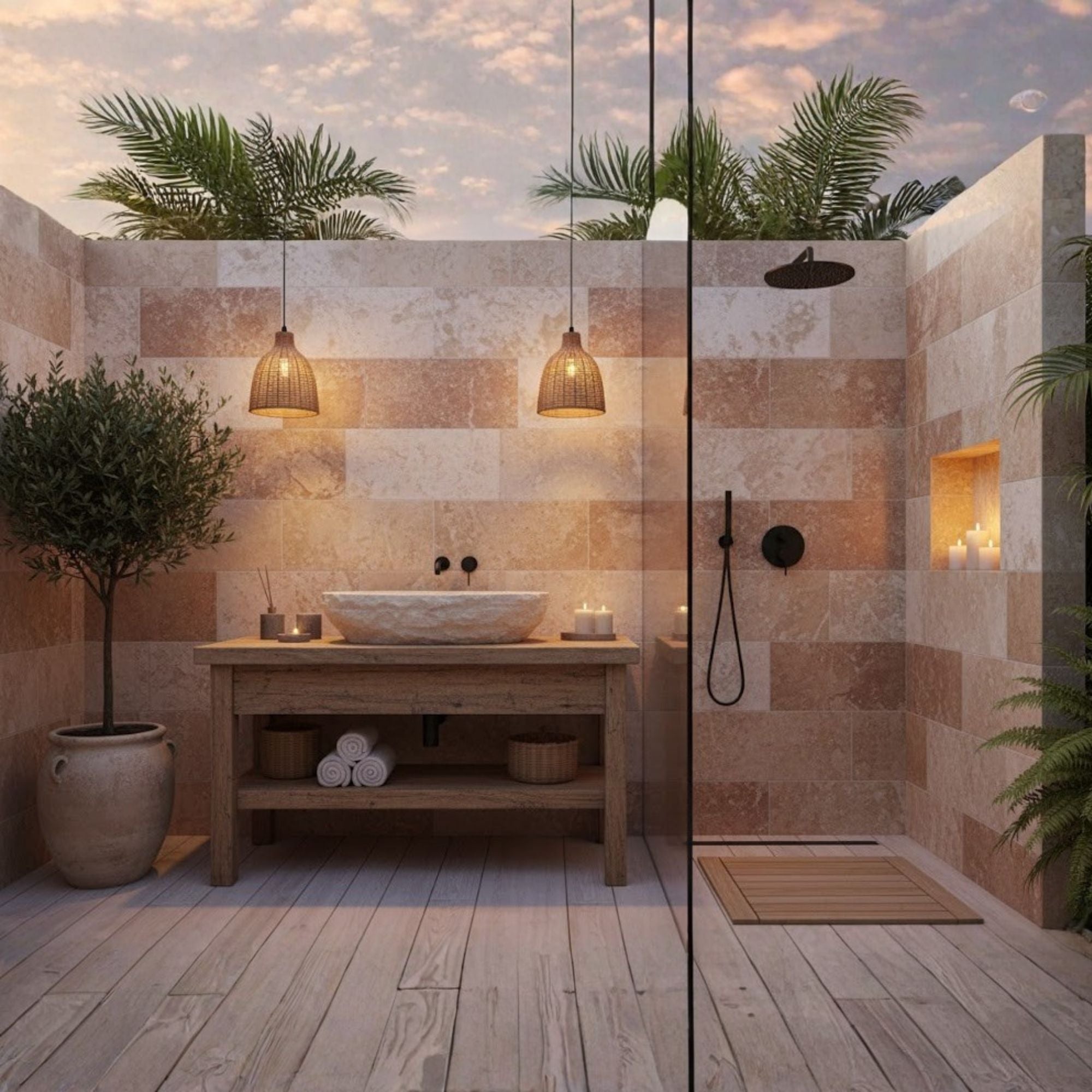 The interior and exterior are honed to a silky matte finish, offering a sophisticated alternative to traditional polished surfaces. Its perfectly symmetrical circular form provides a clean, architectural silhouette that thrives in Japandi, Modern Organic, and Desert Modern interiors. Designed for above-counter installation, this travertine bowl is as durable as it is beautiful, offering a heat-resistant and timeless focal point for any luxury vanity.