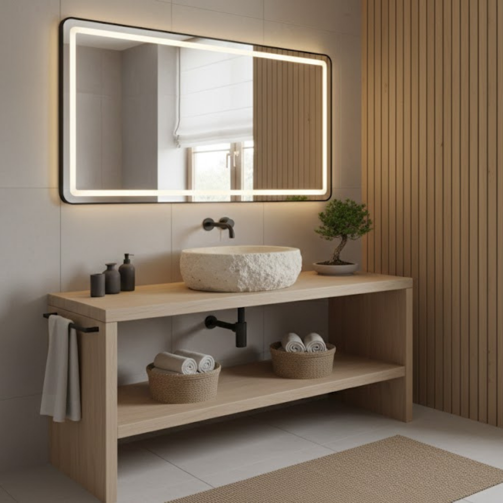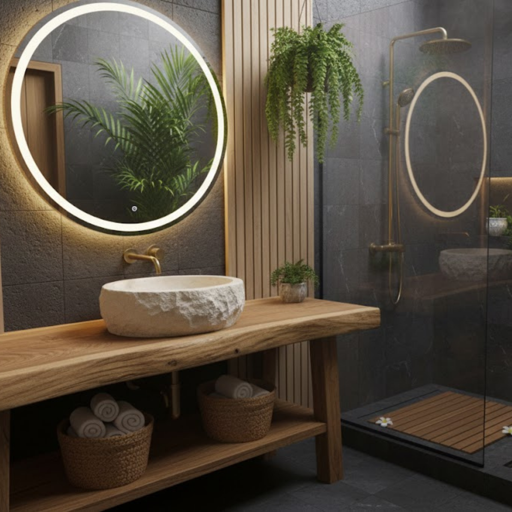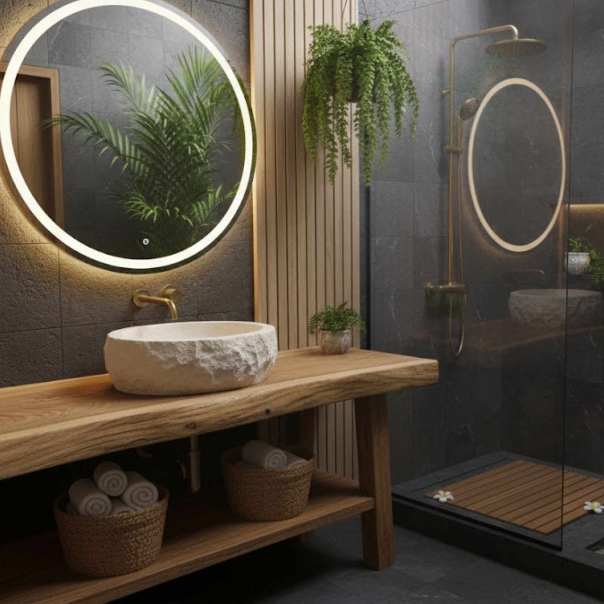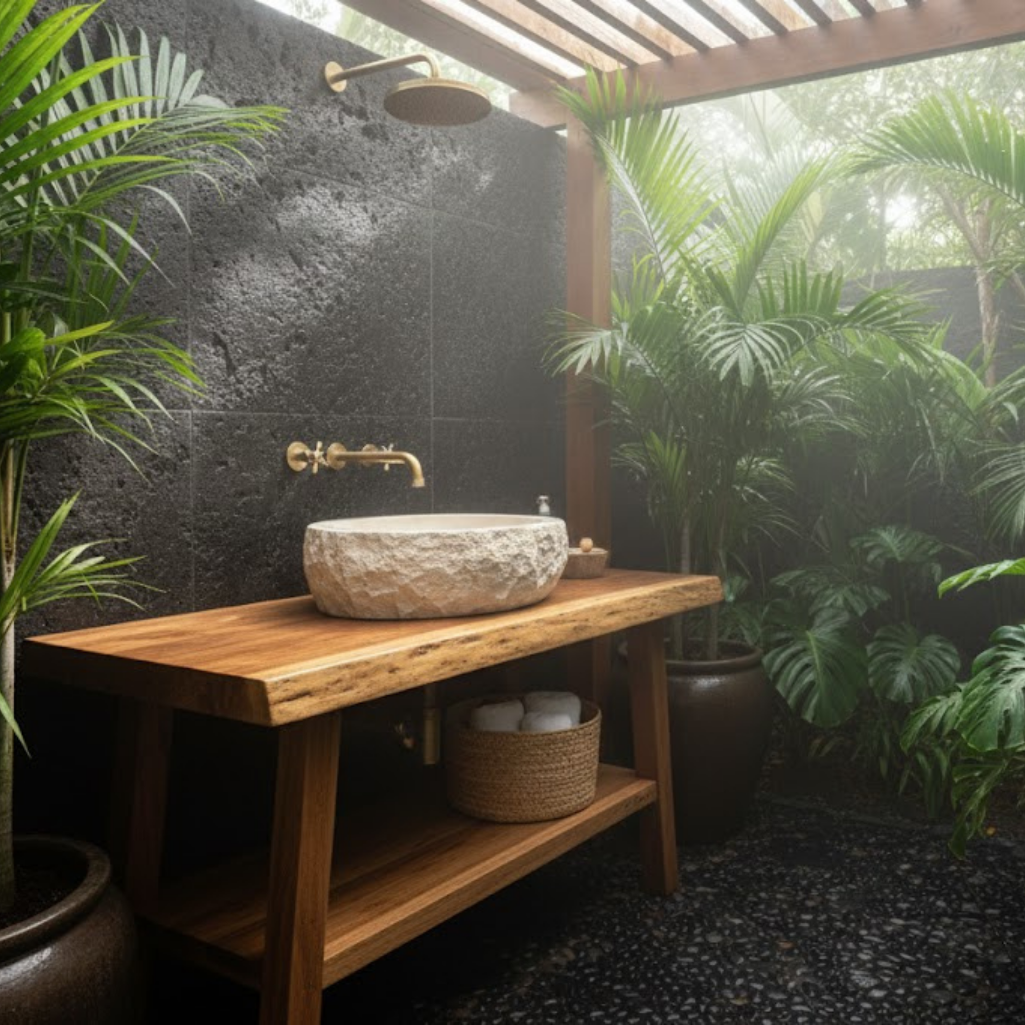The signature feature is its raw, chiseled exterior, providing a rich tactility that embodies the "textural realism" trend. Inside, the stone is honed to a silky matte finish, making it both visually soft and effortless to maintain. Designed for above-counter installation, this monolithic piece pairs seamlessly with brushed gold or matte black fixtures to create a bespoke, spa-inspired aesthetic.