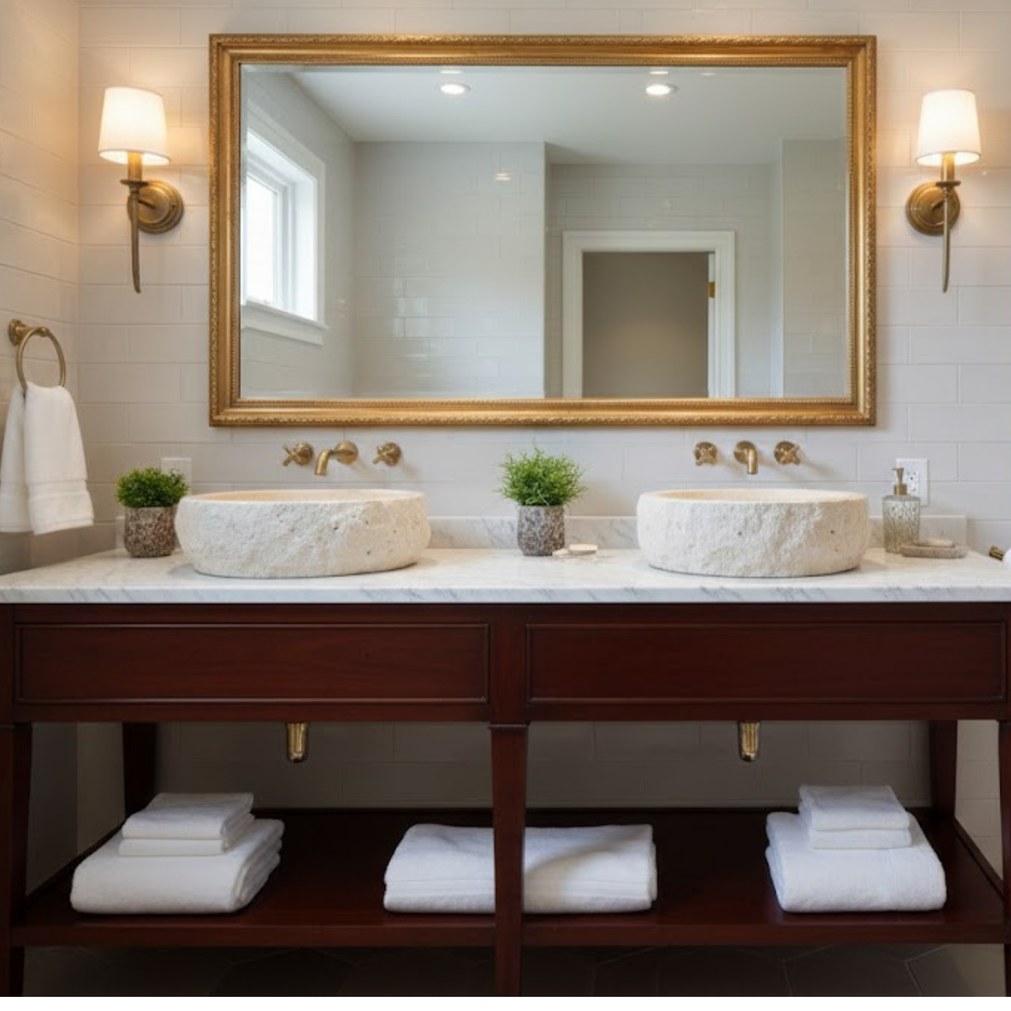 Elevate your bathroom into a meditative sanctuary with the Norhew Chiseled Travertine Vessel Sink. As interior design shifts toward Warm Minimalism in 2026, this basin serves as a sculptural "main character" for your vanity. It is hand-carved from premium natural travertine, a stone celebrated for its unique mineral pits and warm, sandy hues that anchor a room in earthy tranquility.