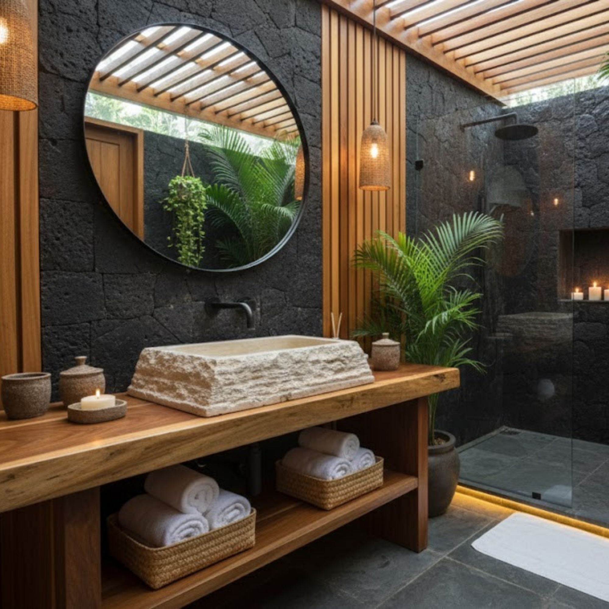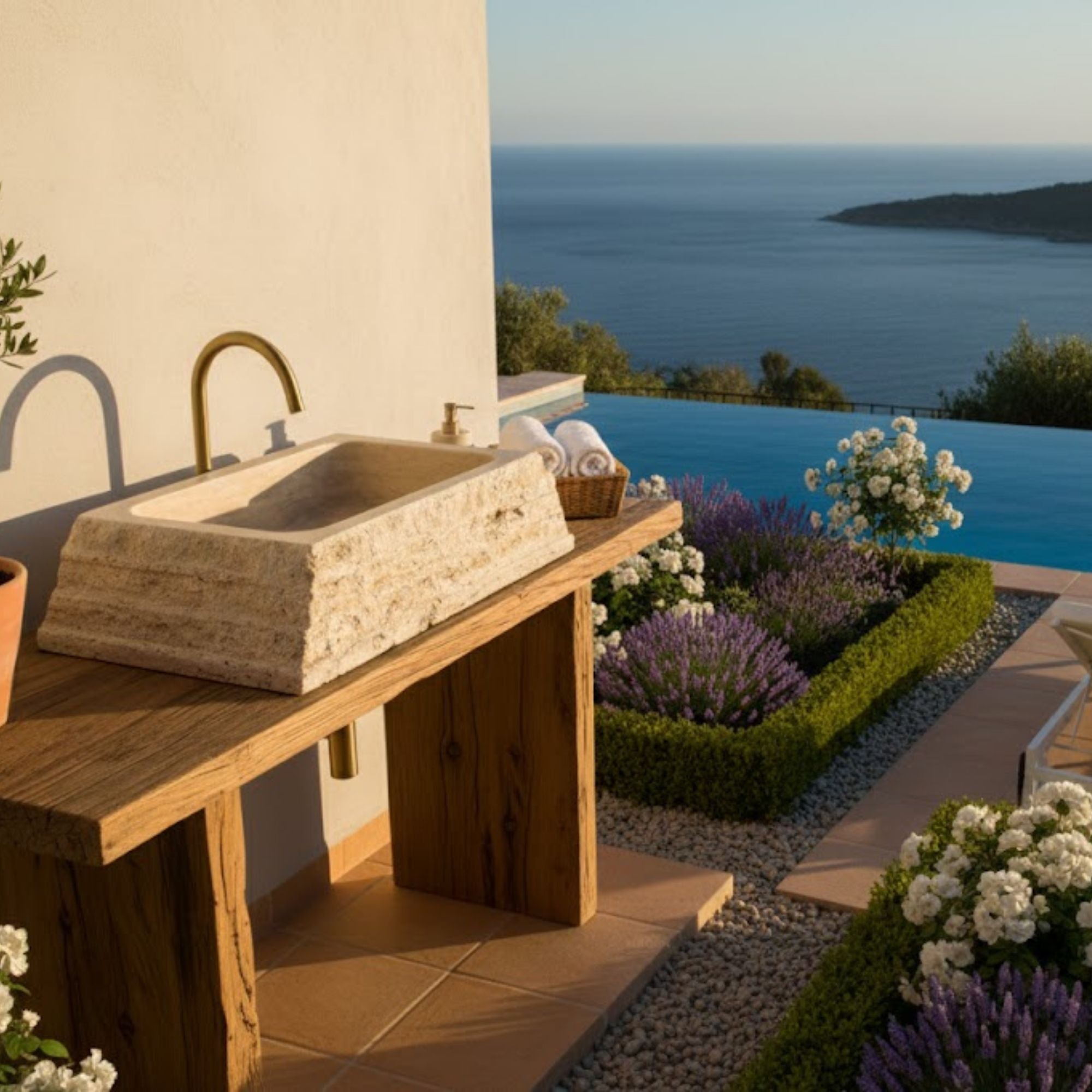 In contrast, the interior is precision-honed to a velvety-smooth finish, ensuring effortless water drainage and a non-porous surface that is as functional as it is beautiful. This heavy-duty vessel sink is designed to be the "main character" of your vanity, pairing perfectly with natural wood finishes. Whether for a high-end master suite or a bespoke outdoor spa, this Norhew sink offers a timeless connection to the outdoors.